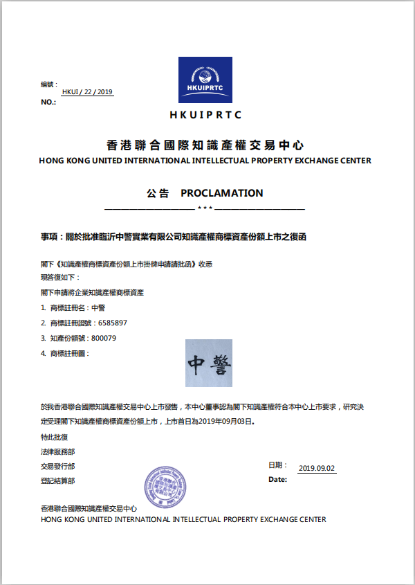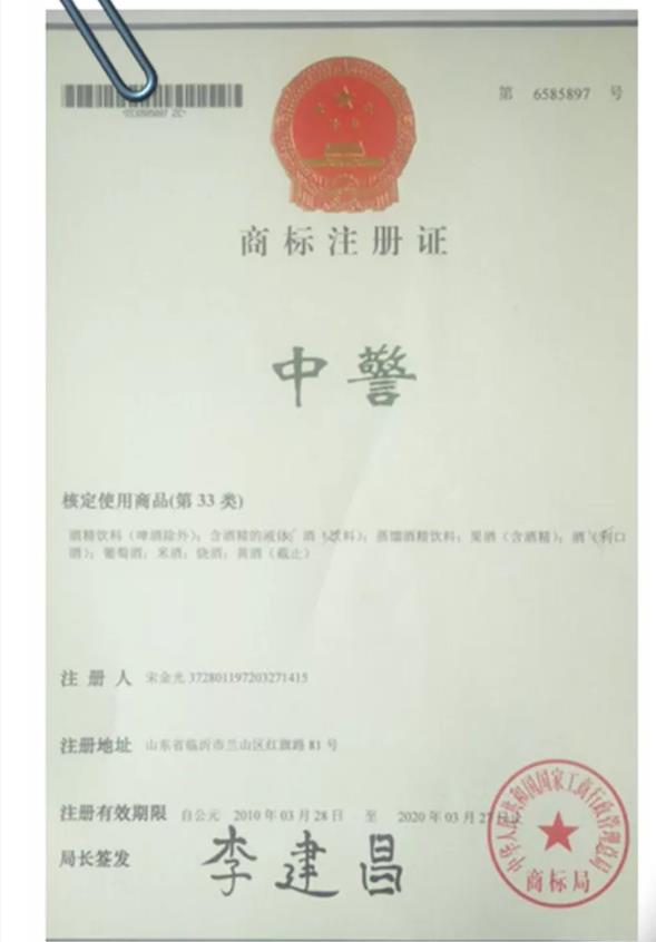 中警纪念酒(中警商标知识产权证券化纪念版)